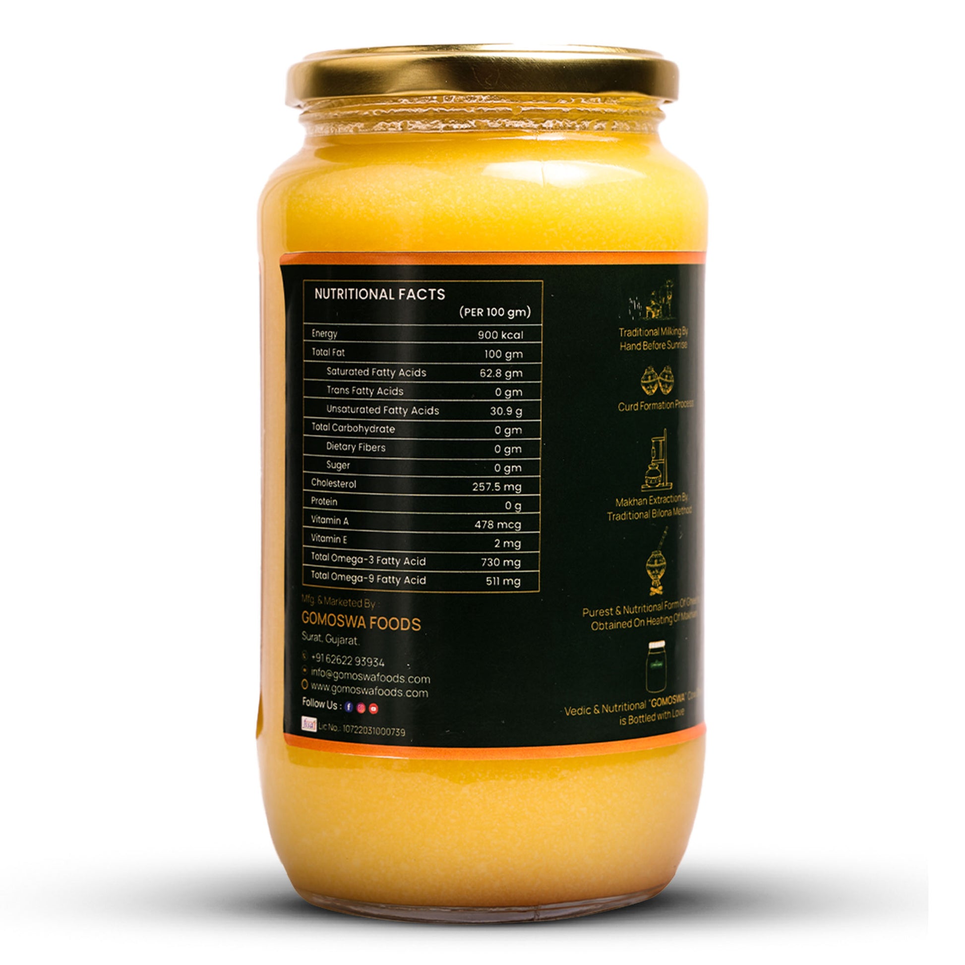 Gomoswa Desi Cow Ghee is ethically prepared from Enzyme Rich Yogurt of Pure Breed Cow, raised & grazed in an Eco-Friendly Environment. This Granular Ghee is carefully produced and Delivered to at your Doorstep.