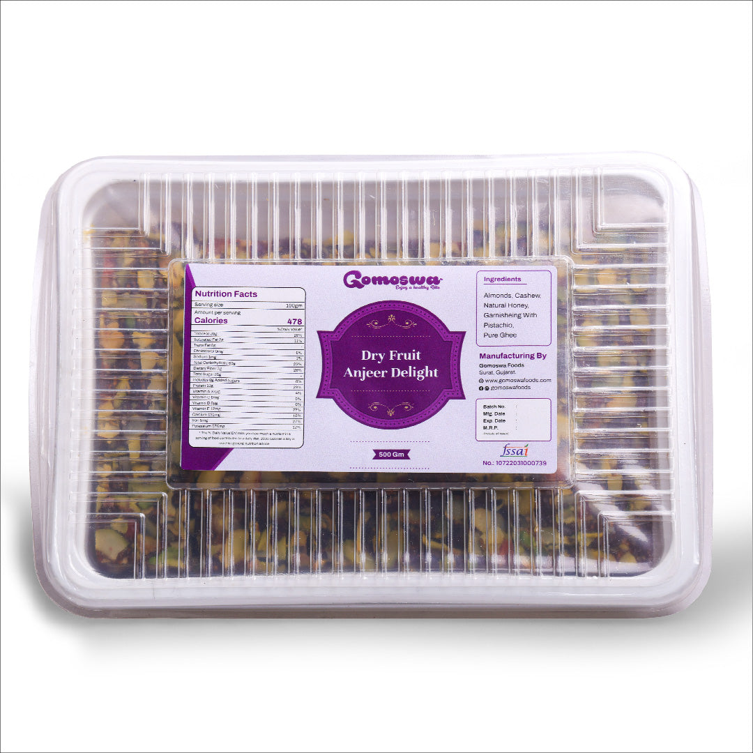 Dry fruit Anjeer Delights are a healthy, indulgent treat made with premium anjeer (figs), and a blend of roasted cashews and almonds. These delights are enriched with the richness of pure desi ghee and a touch of honey for natural sweetness. Garnished with pistachios, they offer a perfect balance of nutrition and flavor. Ideal for gifting or a wholesome snack, they provide a nutritious boost with every bite.